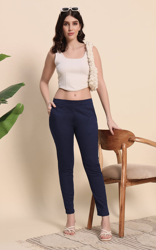 Blue Cotton Lycra Pants