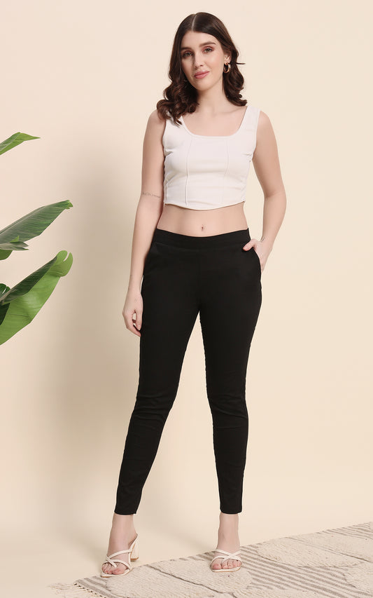 Black Cotton Lycra Pants